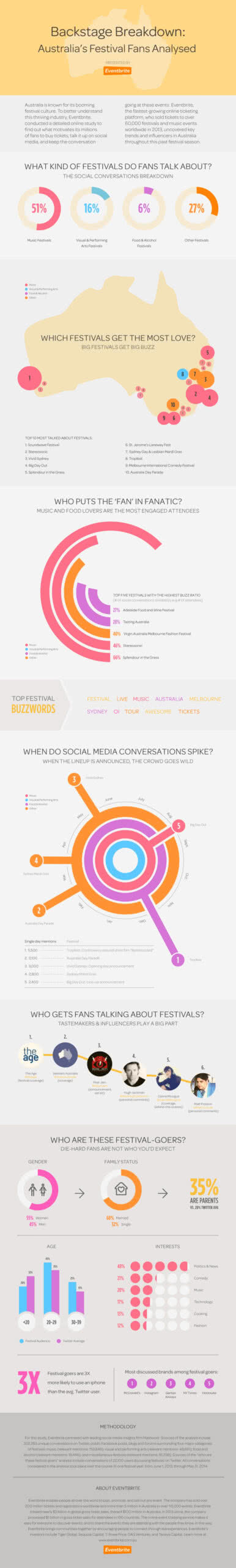 Australia is known for its booming festival culture. To better understand this thriving industry, we conducted a detailed online study to find out what motivates Australian festival fans to buy tickets, talk it up on social media, and keep the conversation going at these events. We uncovered key trends and influencers in Australia throughout this past festival season.