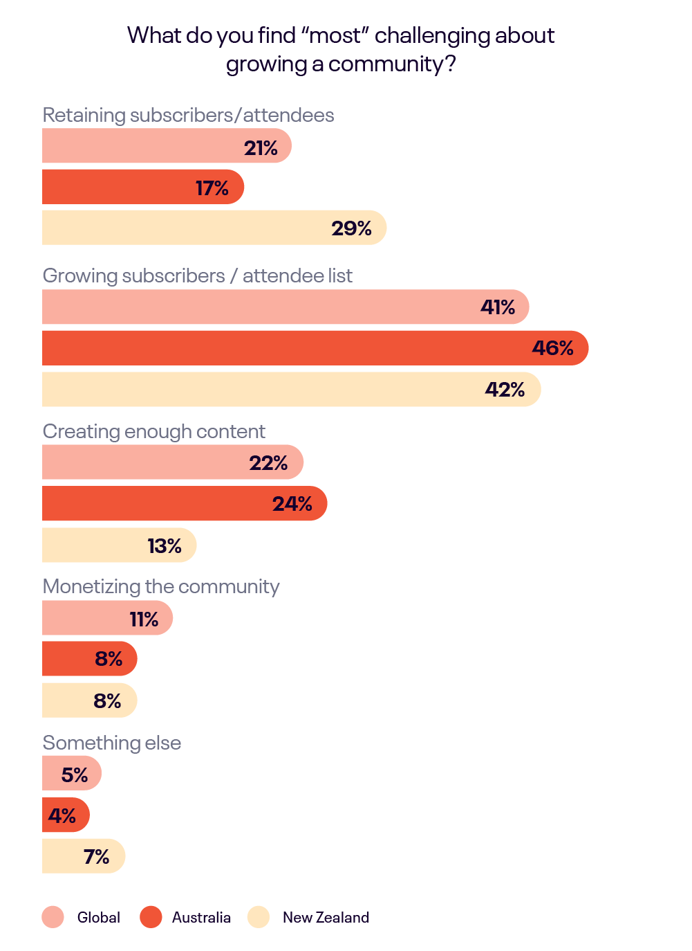 Most Australian and NZ event creators agree that growing a community/following is either extremely important (41%) or very important (37%). But it’s not without its challenges.