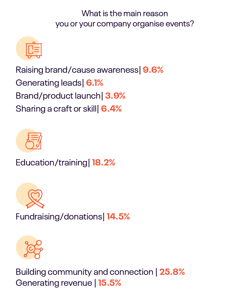 Despite the challenges, “building community and connection” was the main reason Australian and NZ creators gave for organising events, with a response rate of nearly 26%. The second-most common reason was “Education/training” at just over 18%.