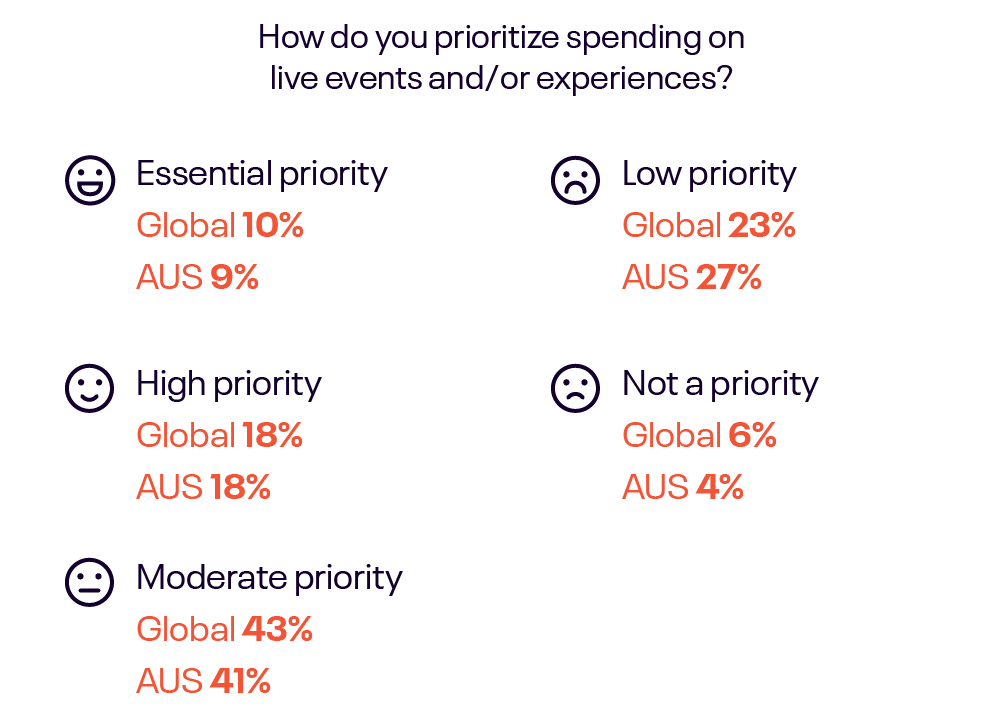 In fact, the majority (58%) of Australian consumers surveyed said they plan to attend more events this year, and a further 37% expect to attend about the same number as last year. Only a tiny fraction (3%) say they will attend fewer.