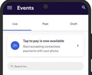 - Efficient Setup By eliminating the need for clunky card readers, on-site payments just got a lot faster and cheaper. Contactless payments can be accepted at the door securely through Tap to Pay, accessible directly on the Eventbrite Organiser app.