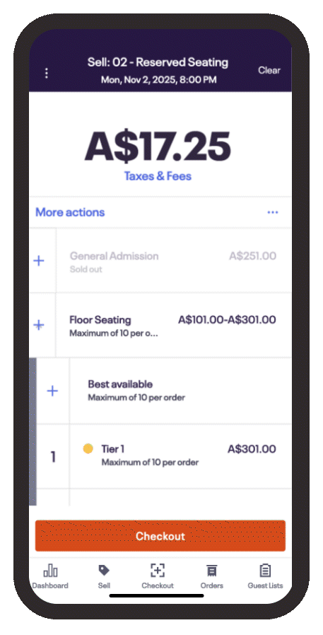 When you sell tickets at your event, select Tap to Pay as the payment method. Then hold the attendee’s payment method to your device to take payment.