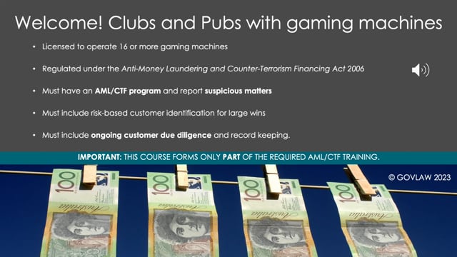 AML/CTF Compliance training for gaming venues - Clubs and Hotels